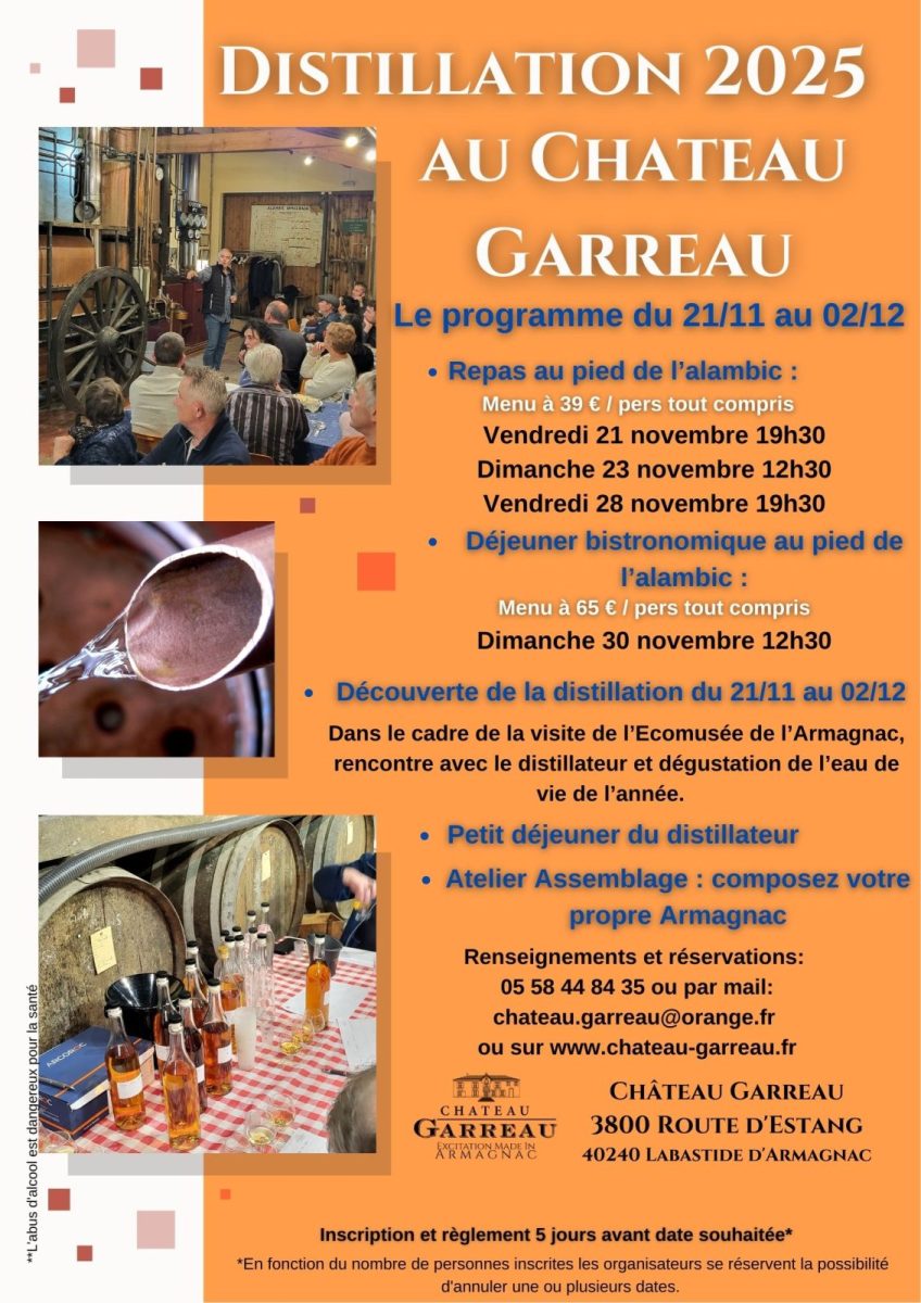 - Mittag- und Abendessen am Fuße des Destillierapparats: direkt in der Destillerie am Fuße des funktionierenden Destillierapparats, bodenständiges Essen und Verkostung des Schnapses des Jahres. Erklärungen durch den Destillateur.