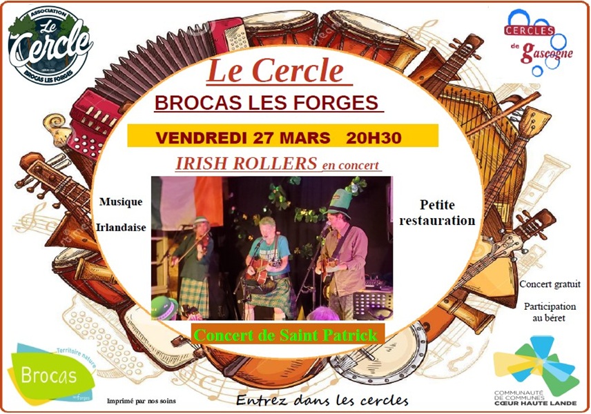 Am Freitag, den 27. März 2026 um 20:30 Uhr, findet im Kreis von BROCAS ein weiterer außergewöhnlicher Abend statt. Anlässlich von SAINT PATRICK wird die Gruppe THE IRISH ROLLERS auftreten, die hier regelmäßig zu Gast ist und ein Repertoire an traditionellen irischen Liedern und Musikstücken darbietet. Die Qualität der Künstler und ihre Fähigkeit, den Saal mit Freude, guter Laune und kulturellem Austausch zu begeistern, sind die Garantie für wunderbare Momente der Geselligkeit und des Teilens.