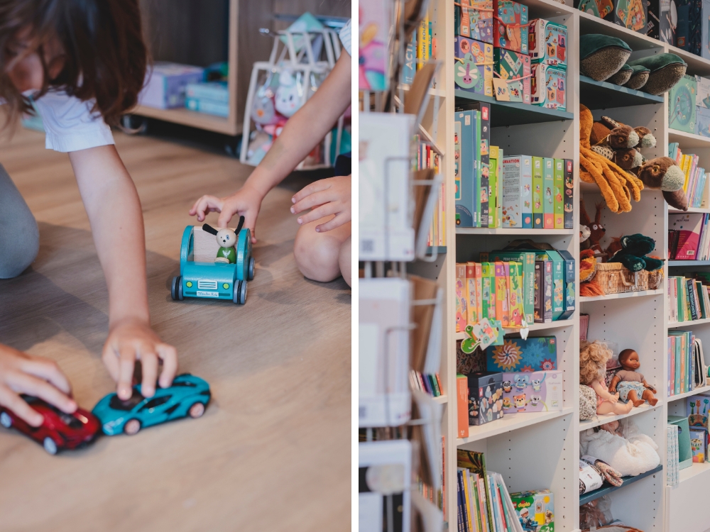 L'Ecureuil Bleu bietet außerdem ein Sortiment an Spielzeug und Spielen, Bastelbedarf und Schreibwaren an.