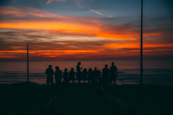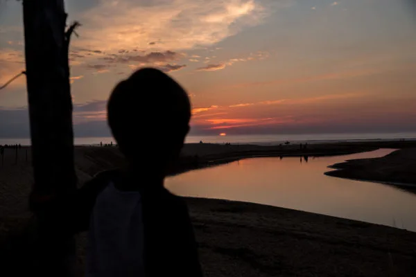 Langsam sinkt die Sonne ins Meer, hält noch einmal inne und zögert kurz. Der Himmel glüht. Liebespaare schmiegen sich zärtlich aneinander. Und schon einen Augenblick später ist alles vorbei. Von einer Seite erklingt Applaus. Die Menge löst sich auf, erste Lampions leuchten auf. Strand und Ozean verschwimmen im Dunkeln. Der Vorhang fällt, der Tag ist nur noch ein Schatten, die Nacht kann beginnen.