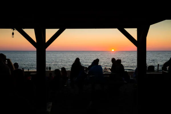 Wie von einer geheimnisvollen Kraft getrieben, finden sich die Menschen abends zusammen. Manche kaufen sich unterwegs ein Eis, wieder andere setzen sich auf eine Caféterrasse. Besonders Eilige haben sich bereits einen Logenplatz auf der Brüstung der Strandpromenade oder direkt im Sand gesichert. Am Strand spielen noch ein paar Kinder, deren Lachen sich mit dem Rauschen der Wellen, den Schreien der Möwen und der Musik vermischt, die von den umliegenden Cafés und Restaurants herüberklingt.