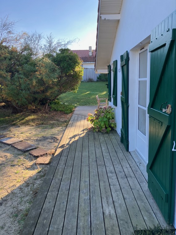 Dieses 78 m² große Ferienhaus im Landes-Stil ist von einer Terrasse in einem fast 1000 m² großen Garten umgeben. Es befindet sich in einer der schönsten Gegenden der Stadt, 50 Meter vom Strand Remember, 100 Meter vom Wald und 300 Meter vom Einkaufszentrum von Mimizan-Plage entfernt.