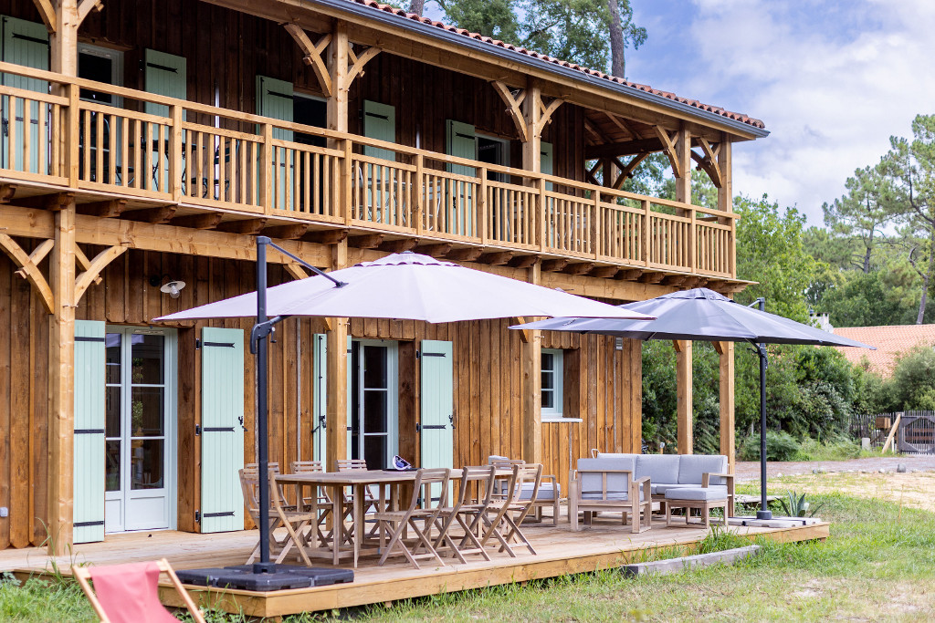 Neues Holzhaus, voll klimatisiert, ruhig gelegen, in der Nähe des Courant de Contis, des Waldes und des Ozeans, vor neugierigen Blicken geschützt.