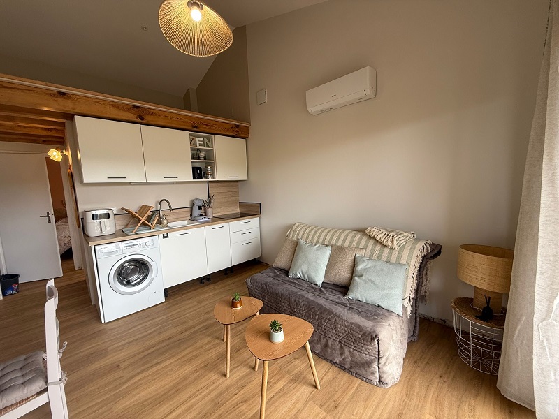 Auch wenn sie sich in der Nähe des Zentrums befindet, können Sie hier die Ruhe genießen. Ideal für einen Aufenthalt in aller Ruhe. Sie haben Zugang zum Waschsalon und zum Schwimmbad der Residenz Les Genêts auf den Anhöhen des Ortes.