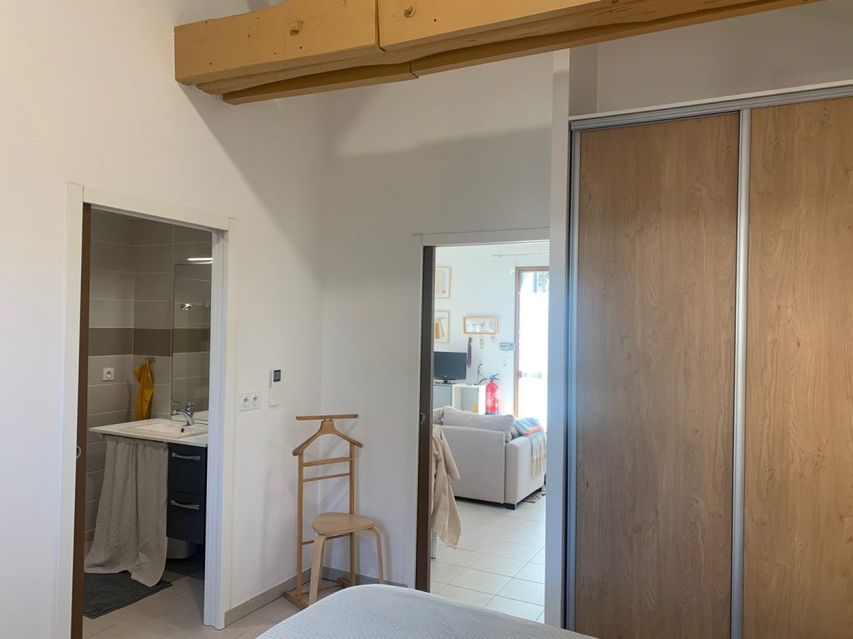 Diese voll ausgestattete Unterkunft für Behinderte besteht aus einem Wohnraum mit offener Küche und einem Schlafzimmer für 2 Personen mit einem Badezimmer mit Dusche und WC.