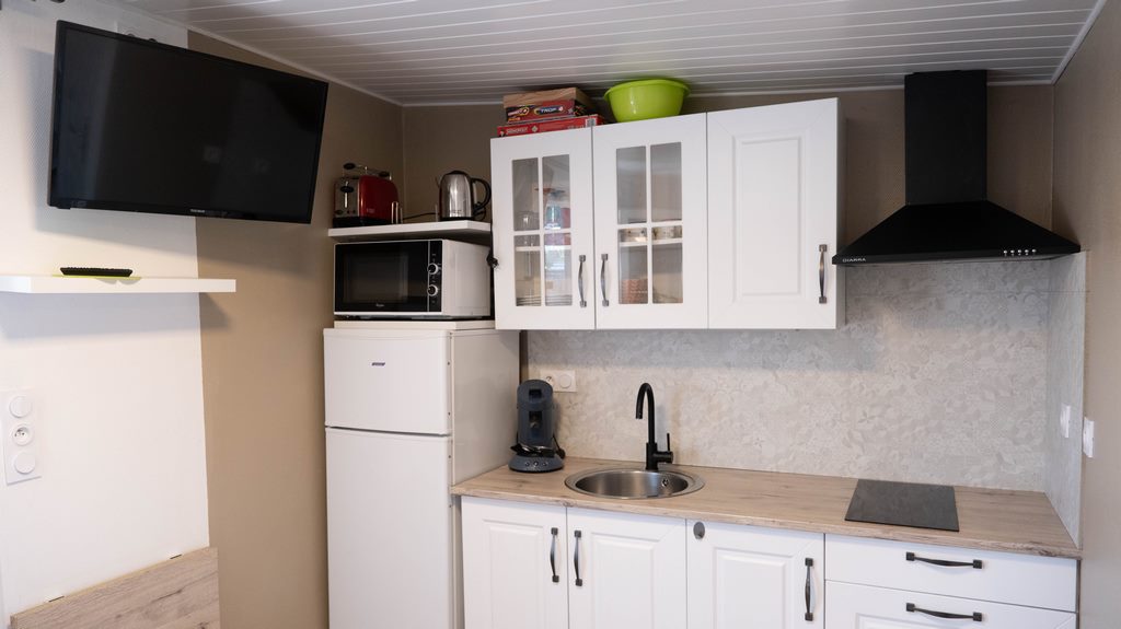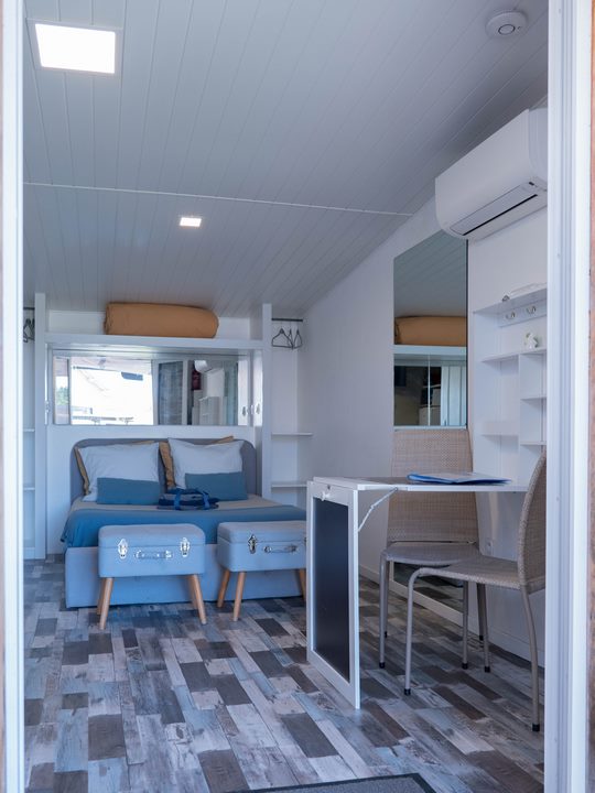 Klimatisiertes Studio für 2 Personen, Bett 140 cm, mit privater Terrasse und Parkplatz.