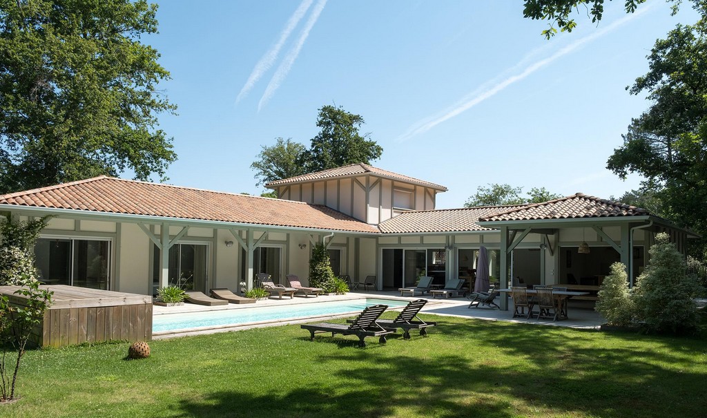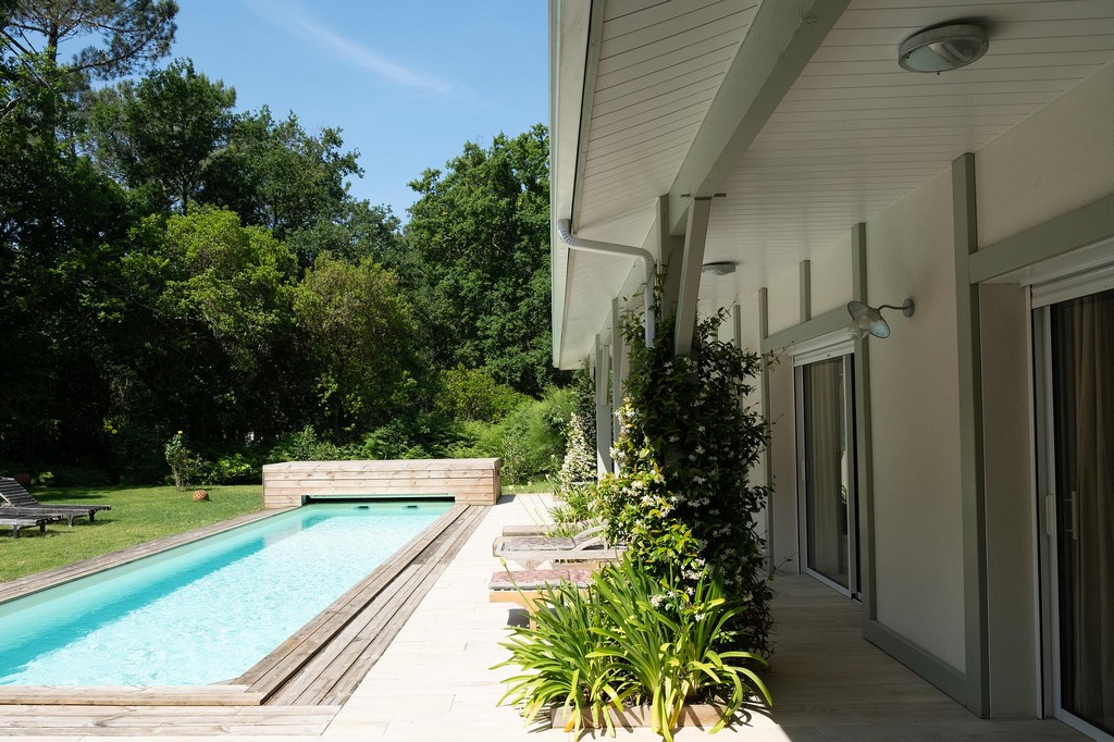 Das gesamte Haus, das auf einem Park von über 2000 m² gebaut wurde, ist nach Südwesten ausgerichtet und liegt gegenüber einem beheizten Pool, der durch einen Unterwasserrollladen gesichert ist, mit einem Poolhaus, einer Sommerküche und einem Bouleplatz.