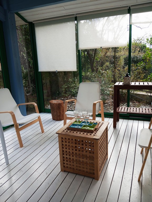 Das Wohnzimmer und das Hauptschlafzimmer führen auf eine große Terrasse, die vor den vorherrschenden Winden geschützt ist, und auf den schattigen Garten. Je nach Geschmack werden Sie die Sonne oder den Schatten der Bäume genießen.
