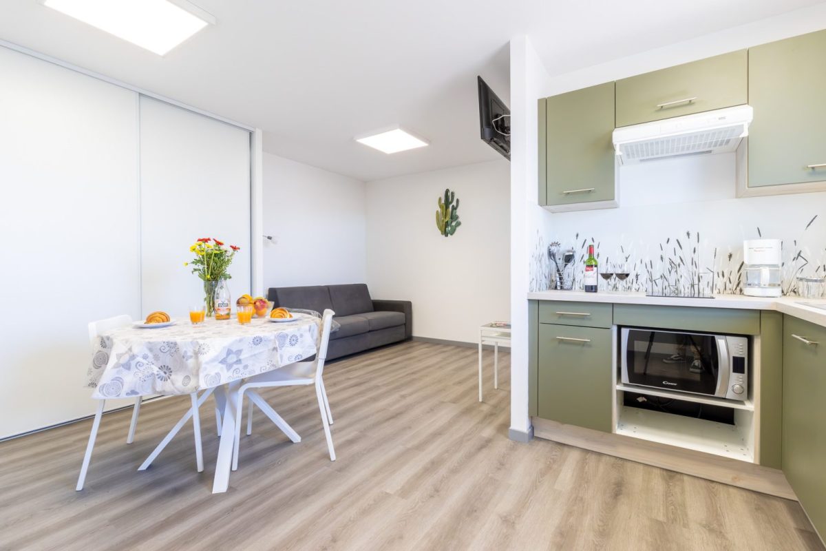 Dieses neue, 3* klassifizierte Studio befindet sich im 1. Stock mit Aufzug. Es ist sorgfältig dekoriert und für Personen mit eingeschränkter Mobilität geeignet und bietet allen Komfort für einen angenehmen Aufenthalt.