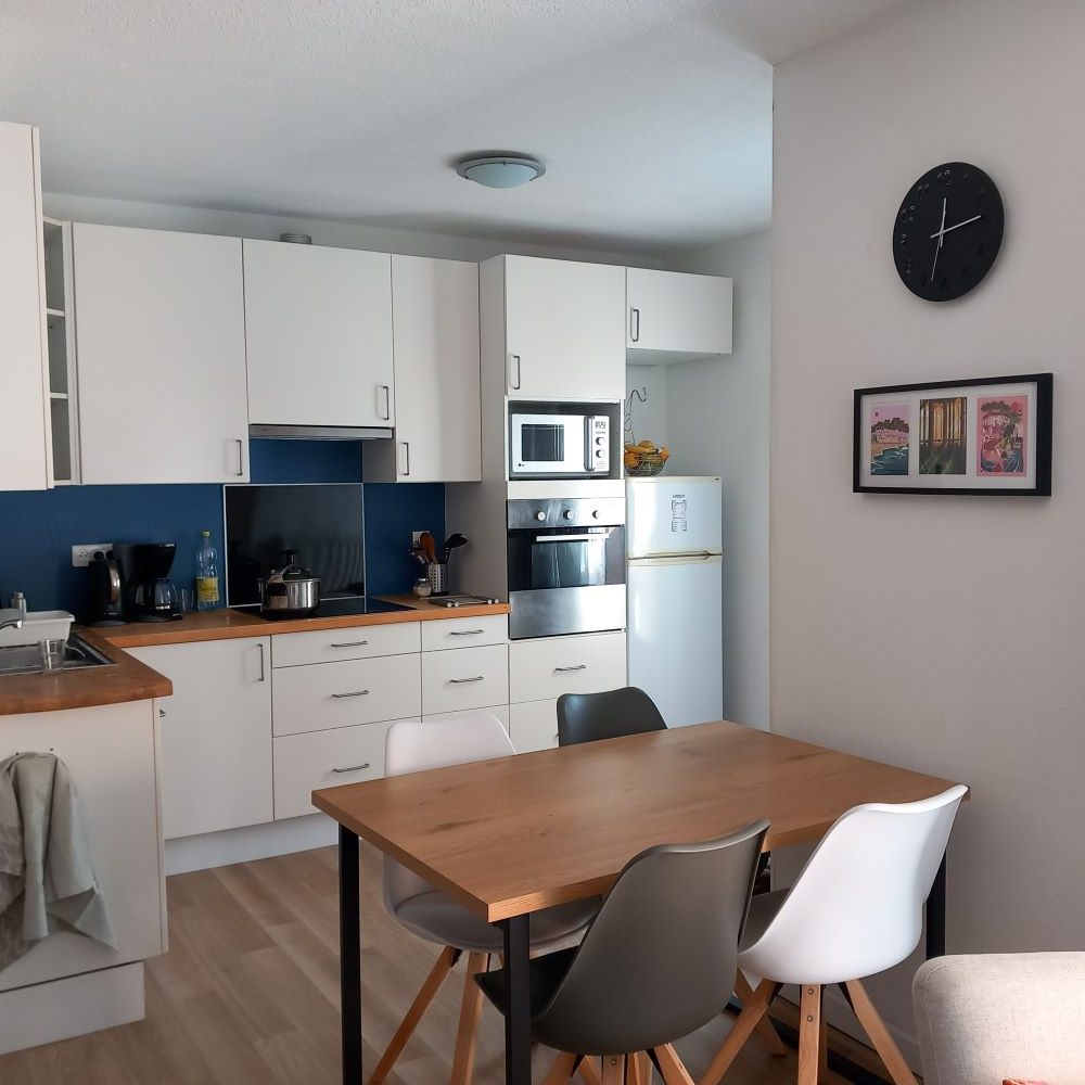 Studio 35m² 2 Sterne, 2. Etage in einem gesicherten Gebäude mit Aufzug. Thermen der Arena in 150m Entfernung. Stadtzentrum DAX in 7 Minuten zu Fuß erreichbar. Einkaufszentrum in 10mn. (3mn mit dem Auto). Weitere Thermalbäder in der Nähe. Bushaltestelle in unmittelbarer Nähe. Balkon mit Tisch und Stühlen. Großer Wohnraum mit Schlafecke, Bettwäsche 2x80x200, trennbar oder aneinandergereiht, Aufbewahrungsschrank. TV-Ecke 2 Sessel, Couchtisch. Einbauküche mit großem Backofen, Cerankochfeld, Kaffeemaschine, Wasserkocher, Toaster. Haushaltsgeräte wie Staubsauger, Ventilator, Suppenmixer, Haartrockner, Bügeleisen, Waschmaschine... Badezimmer mit Dusche und Waschbecken und Aufbewahrungsecke mit Regalen. Einkaufswagen und Regenschirm stehen zur Verfügung. Ausgestattet mit Wifi Faser. Garage im Untergeschoss je nach Größe des Autos oder Parkplatz am Fuße des Gebäudes. Haustiere sind nicht erlaubt.