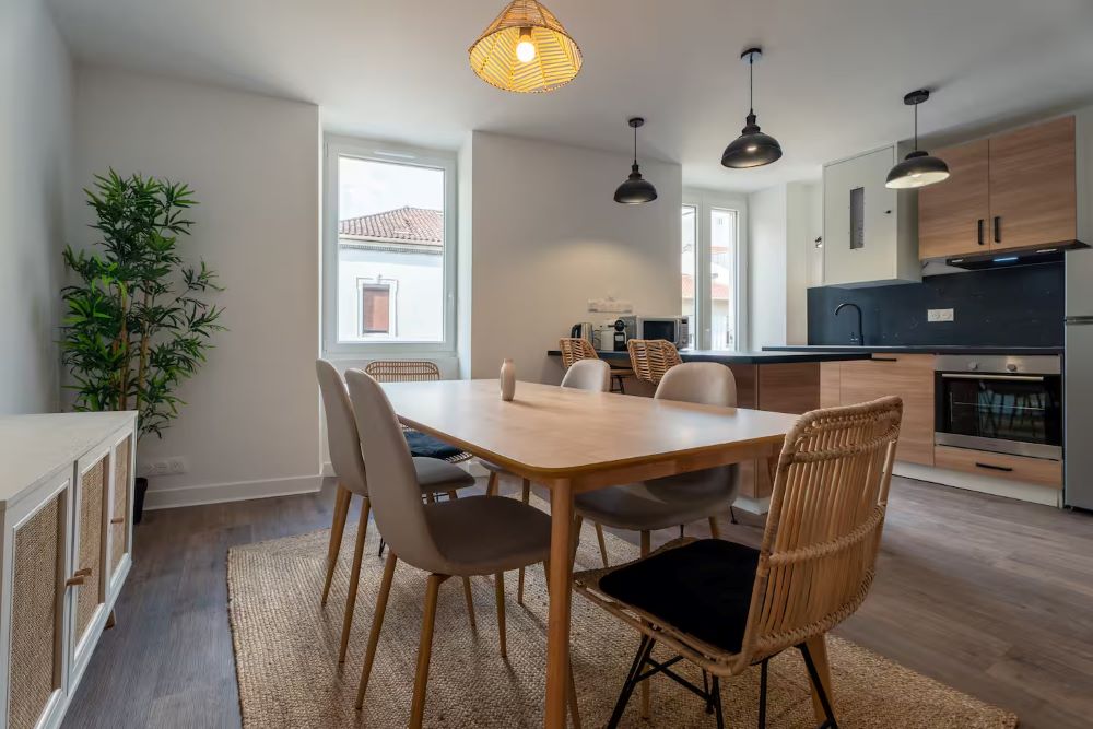 Entdecken Sie diese hübsche, komplett renovierte Zweizimmerwohnung in idealer Lage im ersten Stock einer Residenz im Herzen von Dax! Hell, modern und auf Komfort ausgelegt, bietet sie perfekt Platz für zwei Personen. Das geräumige Schlafzimmer mit angrenzendem Badezimmer bietet einen wahren Kokon, in dem Sie sich nach einem Tag in der Stadt oder in den Thermen entspannen können.