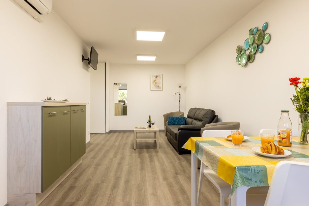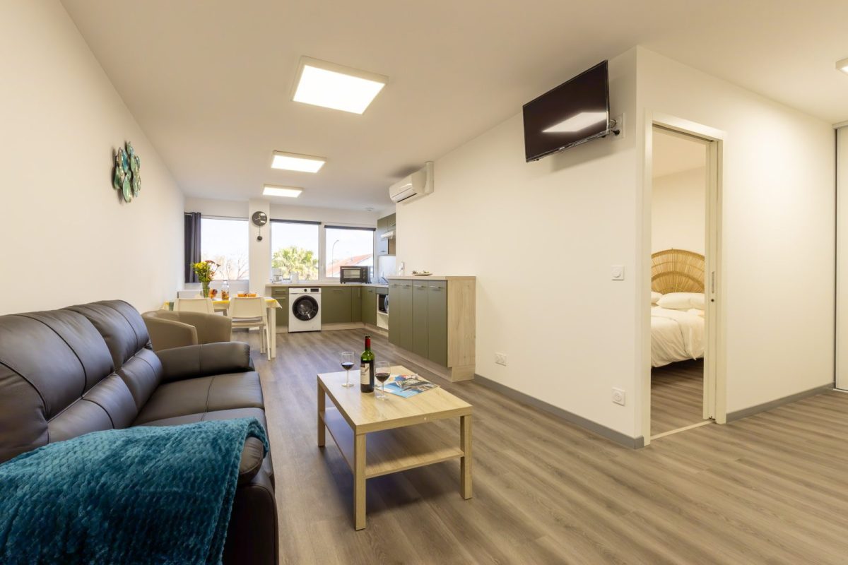 Diese neue, 3* klassifizierte 2-Zimmer-Wohnung befindet sich im 1. Stock mit Aufzug, ist sorgfältig dekoriert und für Personen mit eingeschränkter Mobilität geeignet. Sie bietet allen Komfort für einen angenehmen Aufenthalt.