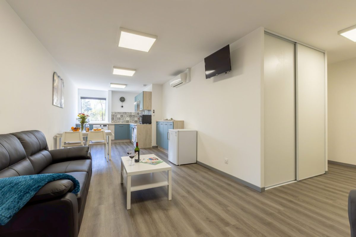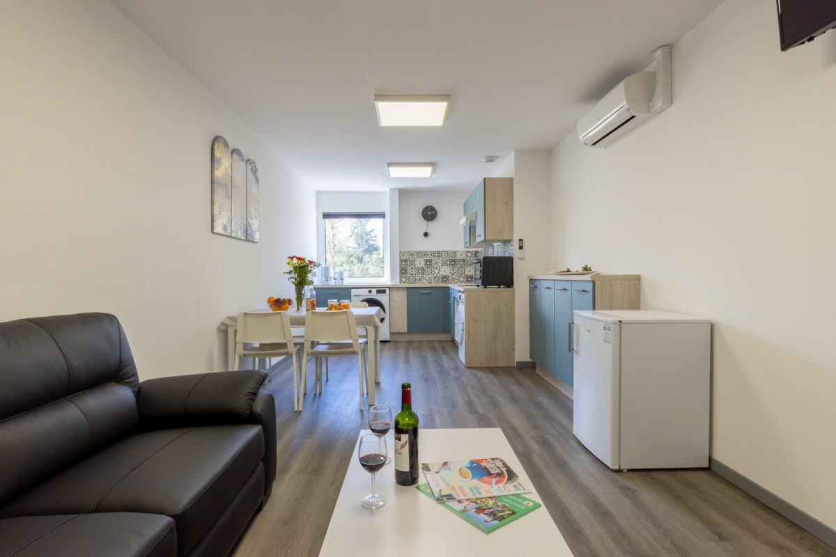 Diese neue, 3* klassifizierte 2-Zimmer-Wohnung befindet sich im 1. Stock mit Aufzug, ist sorgfältig dekoriert und für Personen mit eingeschränkter Mobilität geeignet. Sie bietet allen Komfort für einen angenehmen Aufenthalt.