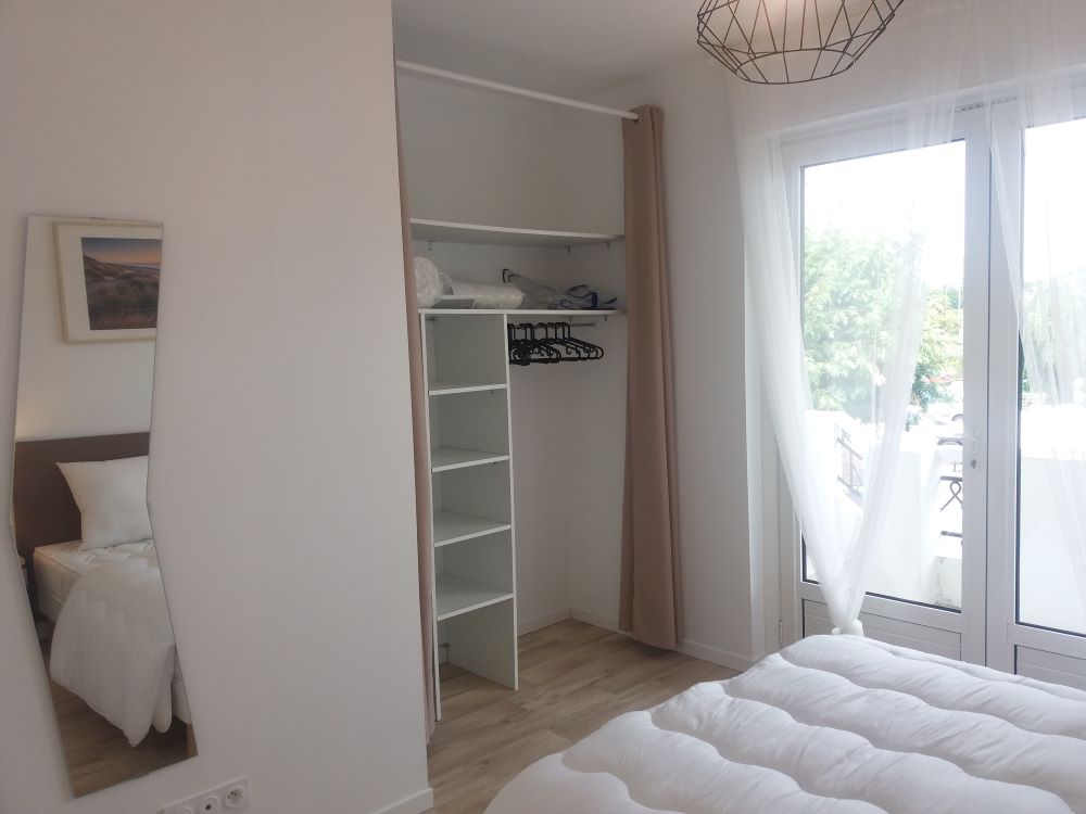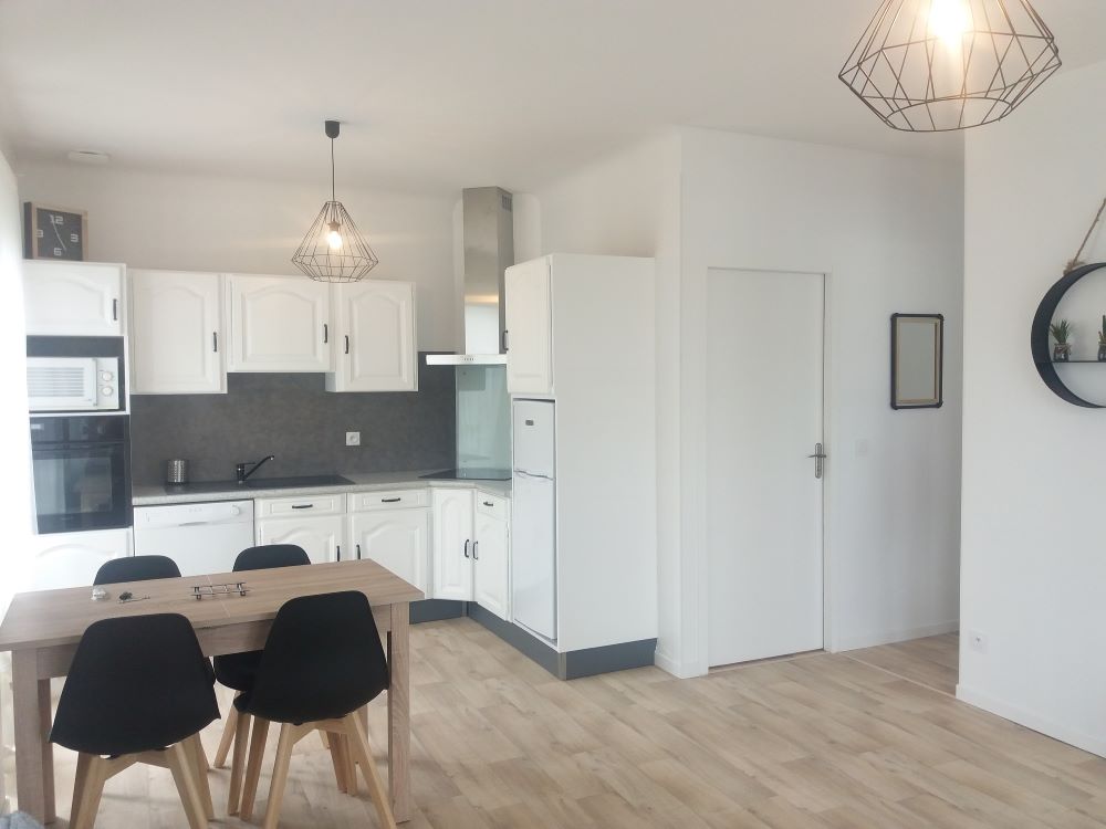 Diese 2-Zimmer-Wohnung, die sich im 1. Stock ohne Aufzug befindet, ist vollständig ausgestattet, damit Sie sich wie zu Hause fühlen: eingerichtete Küche, gemütliche Sitzecke, komfortables Schlafzimmer und praktische Ablagemöglichkeiten.