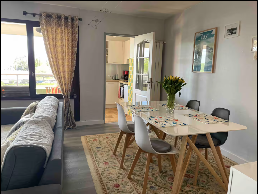 Sie befindet sich in der Nähe der Kurzentren, der Arena von Dax, des heißen Brunnens und auch des Stadtzentrums (5 bis 10 Minuten zu Fuß).