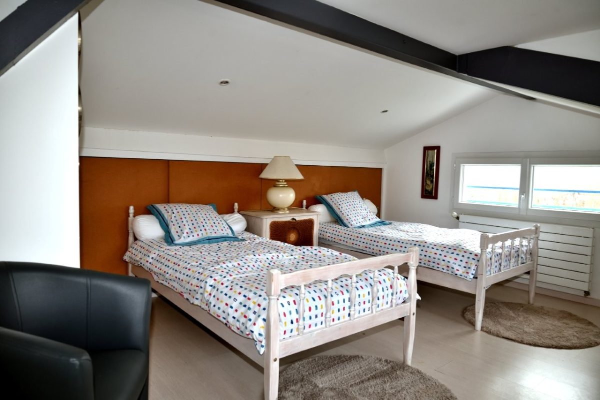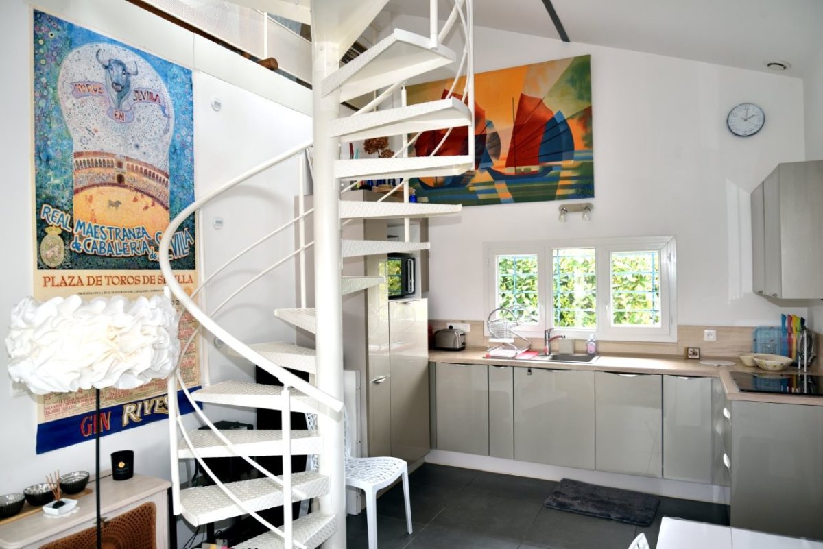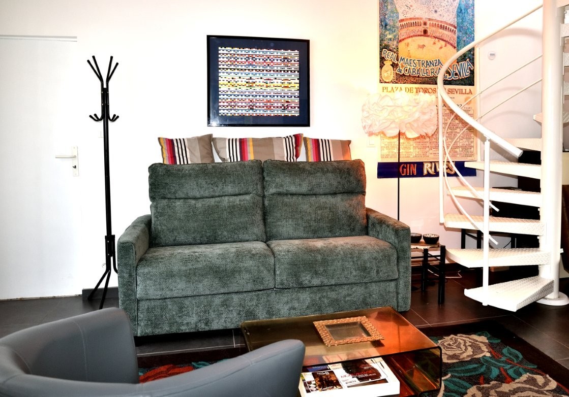 In einem ruhigen Viertel ohne Gegenüber umfasst die Unterkunft im Erdgeschoss eine voll ausgestattete Küche, die sich zu einem gemütlichen Wohnzimmer (TV, Wi-Fi) öffnet, ein Schlafzimmer (Bett 140), ein Badezimmer mit italienischer Dusche, ein separates WC und viel Stauraum sowie im Obergeschoss ein Zwischengeschoss mit zwei 90 cm breiten Betten.