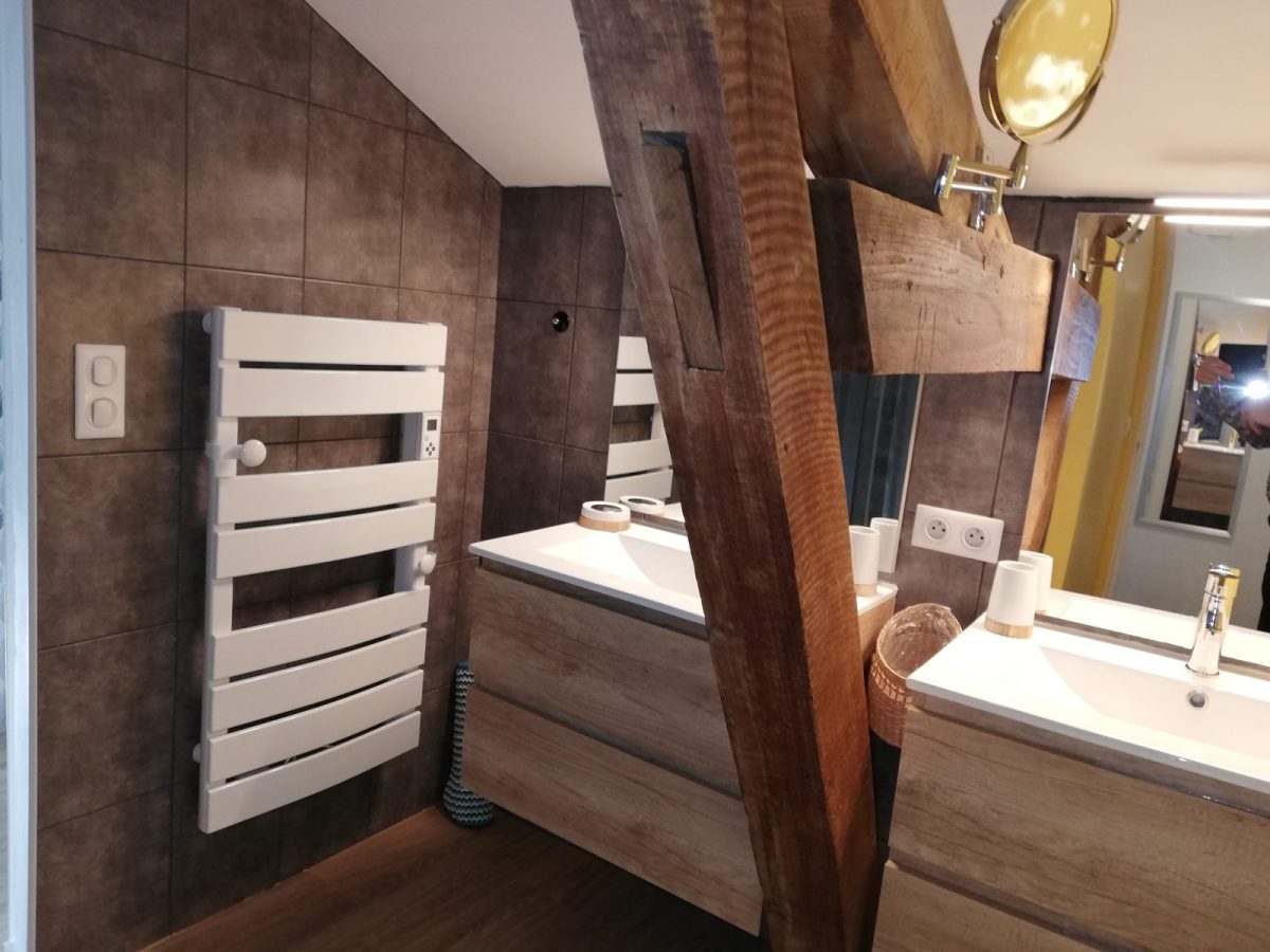 - Badezimmer mit Dusche und Doppelwaschbecken