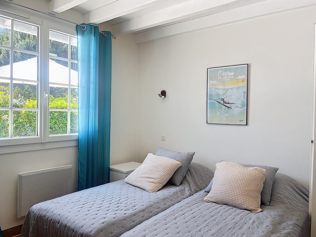 Das Haus besteht aus: Wohnzimmer mit Essbereich und Sitzgruppe; ausgestattete Küche (Backofen, Geschirrspüler, Filterkaffeemaschine); 1 Schlafzimmer mit 1 Bett 140 cm, 1 Schlafzimmer mit 2 Betten 90 cm, 1 Schlafzimmer mit 2 Etagenbetten (140 cm unten und 90 cm oben) und 1 Bett 90 cm; 1 Badezimmer mit Dusche und Waschbecken; 2 separate WCs; 1 Abstellraum mit Dusche, Waschmaschine und Trockner. Schön angelegtes Grundstück von 700 m². WIFI.