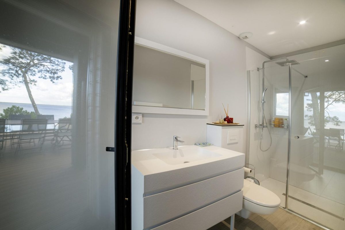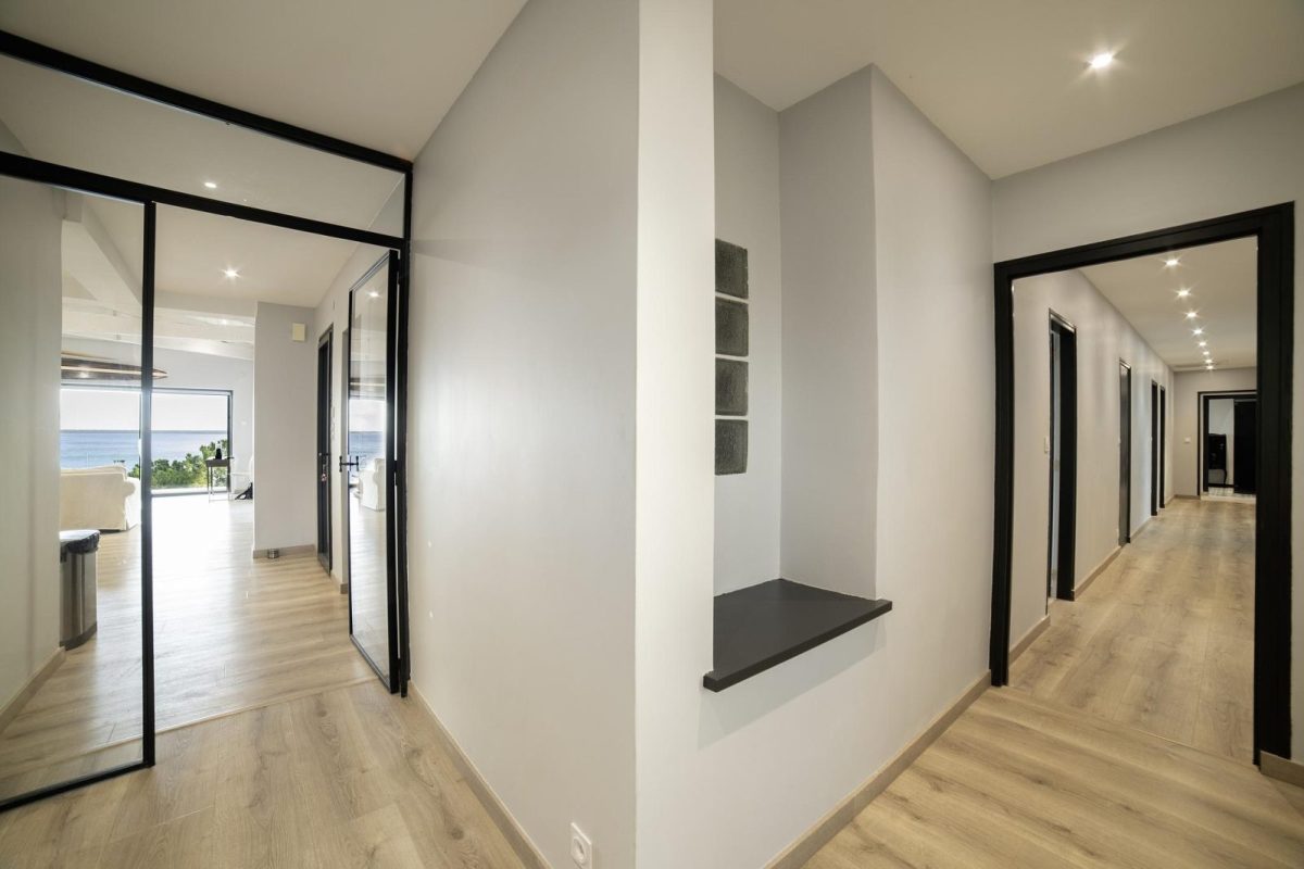 Großer Wohn-/Küchenbereich von 52 m² mit einer riesigen Fensterfront zum See, Terrasse von 70 m² mit Panoramablick auf den See, 4 Schlafzimmer mit Fensterfront zum See und 4 Badezimmer, 5 WCs, 1 Waschraum. Vollständig ausgestattete Küche, elektrische Rollläden, Fernseher mit Videoprojektor.