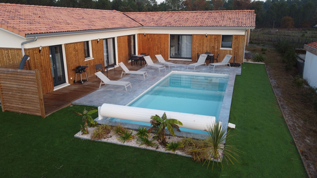 Treffen Sie sich auf der Terrasse (70m2), am beheizten Pool (9*4) zum Mittagessen