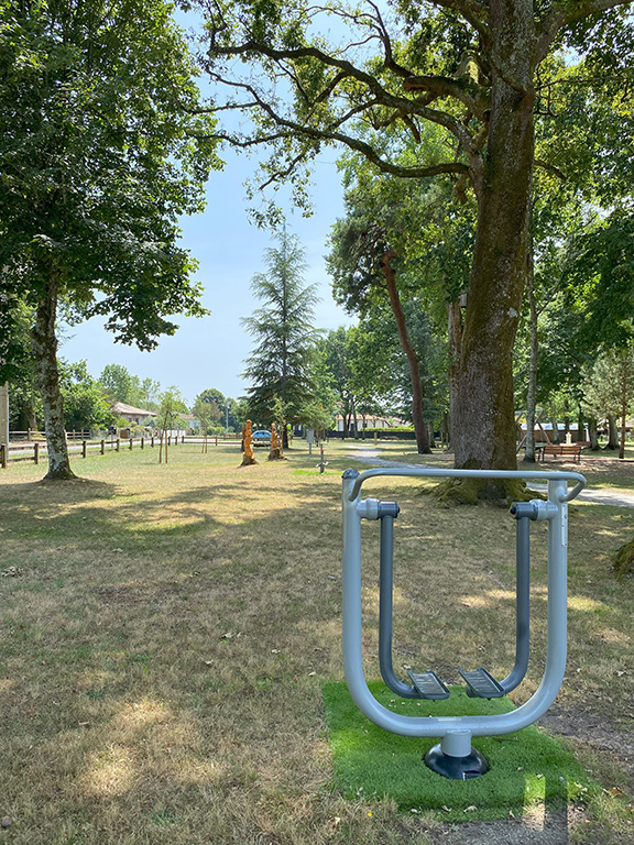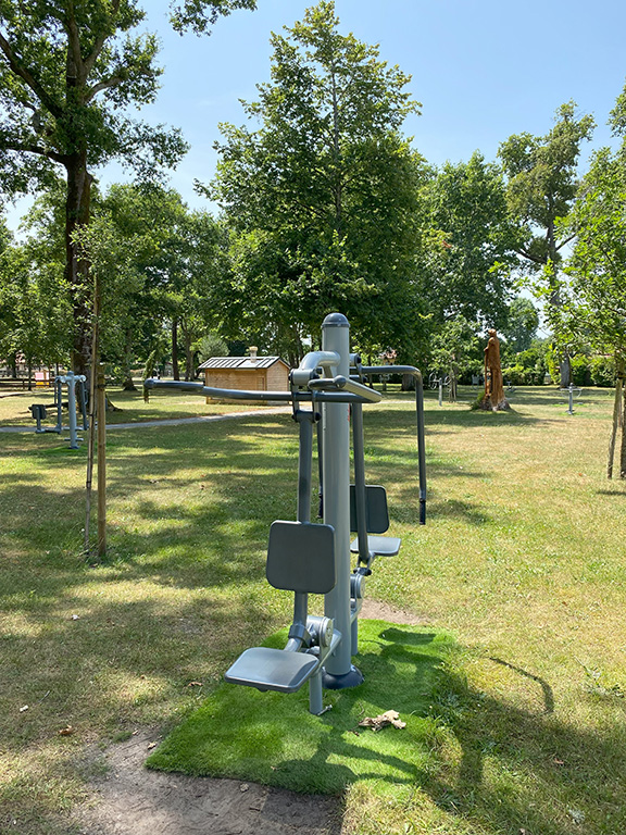 Gesundheitsparcours, Kinderspielplatz, Picknicktische und Bouleplatz.