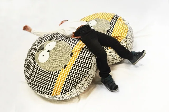 Cette collection est depuis peu complétée par une gamme pour les enfants avec des sacs à dos, des trousses, des coussins… Ici peu de motifs géométriques, mais des dessins imaginés pour certains par leurs propres enfants, mis en valeur par des couleurs très chatoyantes et des petits messages plein d’humour…