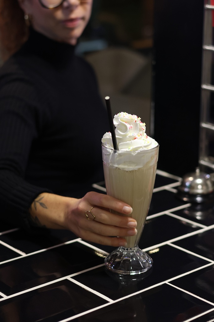 Die Speisekarte bietet außerdem frische Salate, Bagels, Hotdogs und frische Pommes frites.