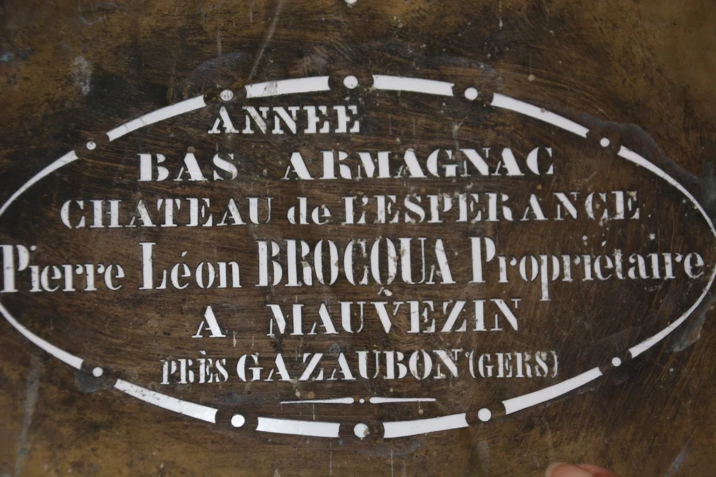 Pour la petite anecdote, après avoir acheté le domaine, les propriétaires ont retrouvé cette vieille plaque… Dans le passé, le domaine était-il situé dans le Gers ? C’est fort probable car le territoire de l’Armagnac s’étend au-delà des frontières landaises.